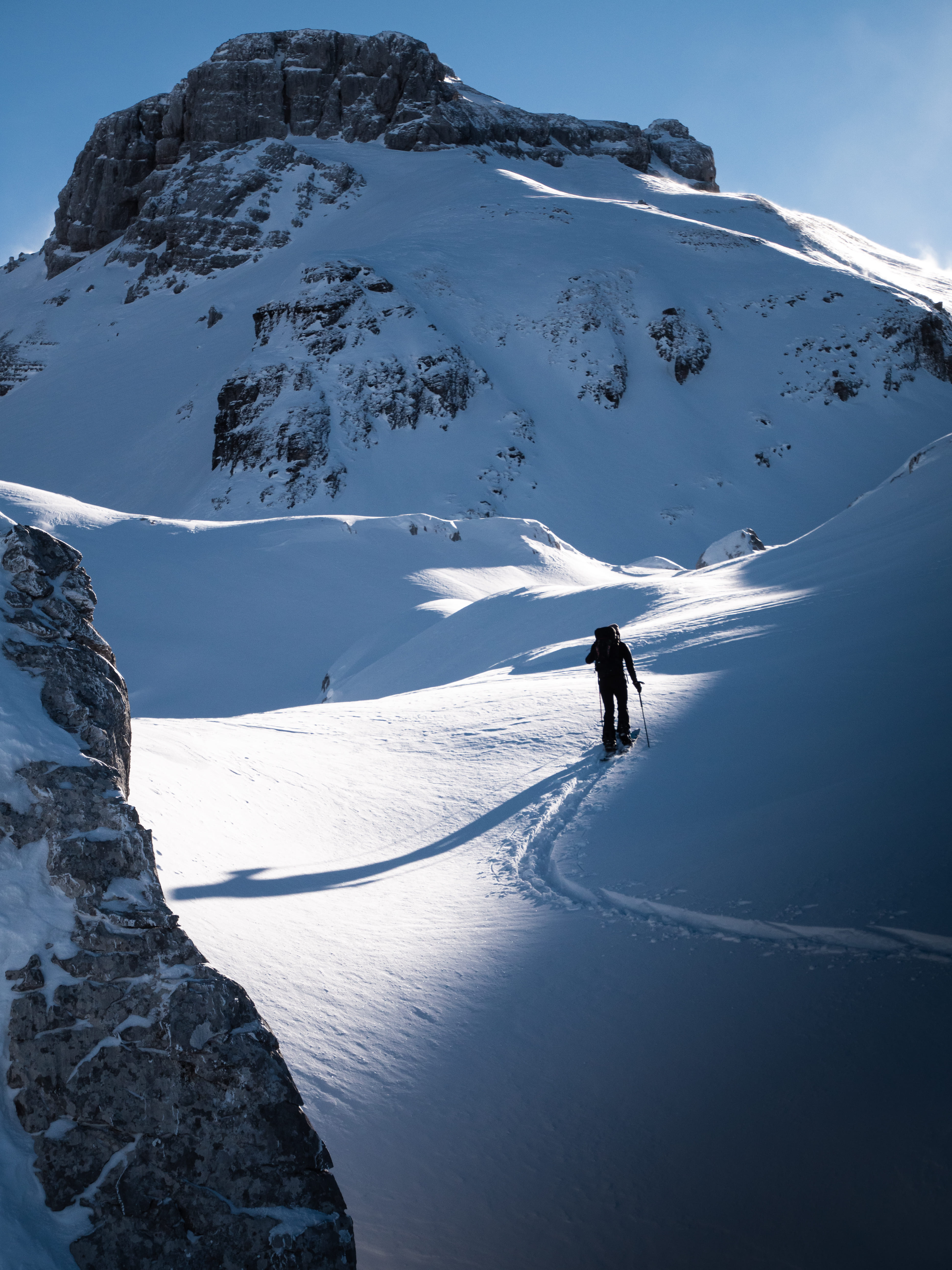 Für Teilnehmer, die den Fokus rein auf die praktische Anwendung legen wollen, bietet der Workshop Narrow die maximale Effizienz. Dieses Format ist als intensiver Tag konzipiert, an dem wir uns ausschliesslich den markanten Couloirs des Titlis-Massivs widmen. Da keine Zeit mit langen Theorieblöcken verloren geht, richtet sich dieser Workshop an Rider, die bereits über eine sehr gute Kondition und eine solide Technik im steilen Gelände verfügen.